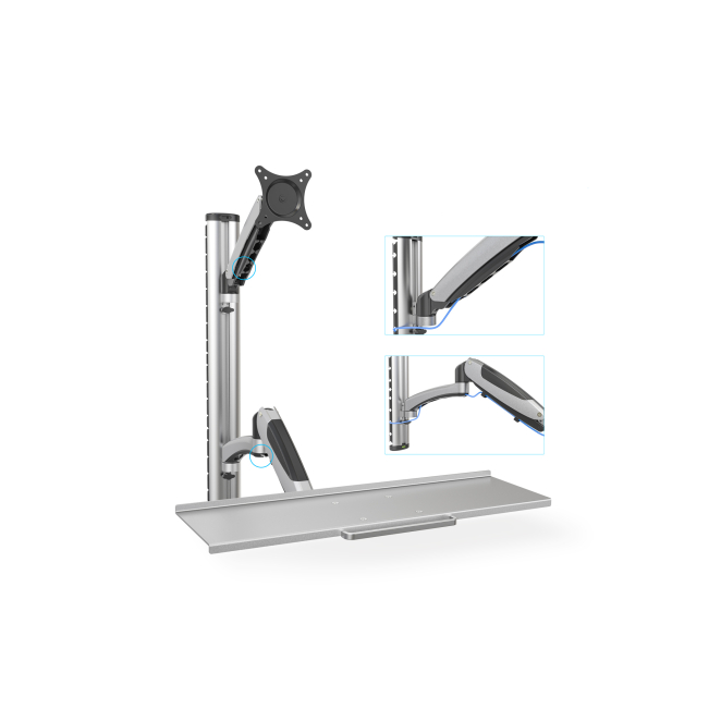 Montar el monitor y teclado en la pared ahorra espacio valioso en el escritorio.