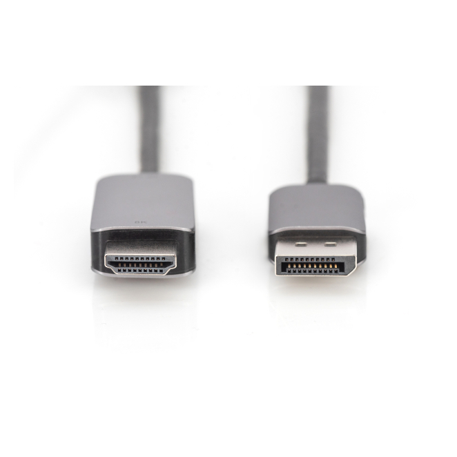El cable adaptador Digitus 8K DisplayPort a HDMI tipo A cuenta con una carcasa de aluminio y conectores chapados en níquel, ofreciendo una construcción robusta y duradera.