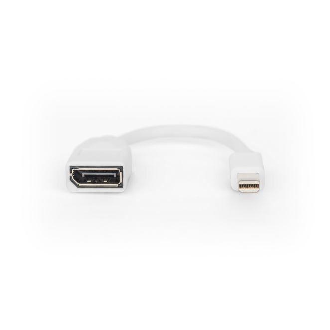 Imagen del cable adaptador DisplayPort de Digitus con conexión mini DP a DP, SKU DB-340405-001-W, ideal para transferencia de video y audio en alta definición