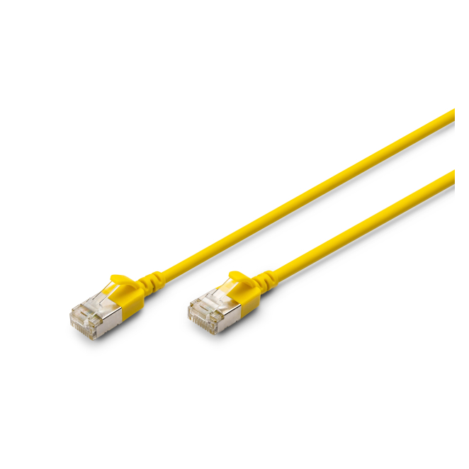 Cable de conexión delgado Digitus CAT 6A F-FTP, longitud de 0,3 metros, color amarillo, SKU DK-1632-A-003S-Y