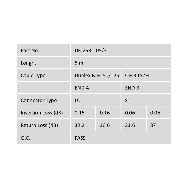 Cable de fibra óptica multimode OM3 de Digitus con conectores LC y ST, SKU DK-2531-05/3