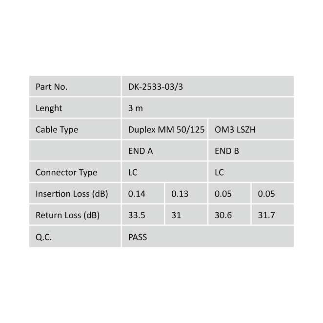 Cable de conexión de fibra óptica Digitus multimode OM 3 con conectores LC/LC, SKU DK-2533-03/3, ideal para centro de datos