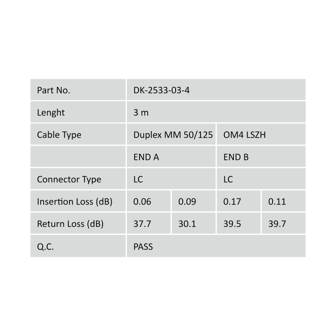 Está compuesto por fibra óptica OM4 de alta calidad, garantizando un rendimiento superior y durabilidad.