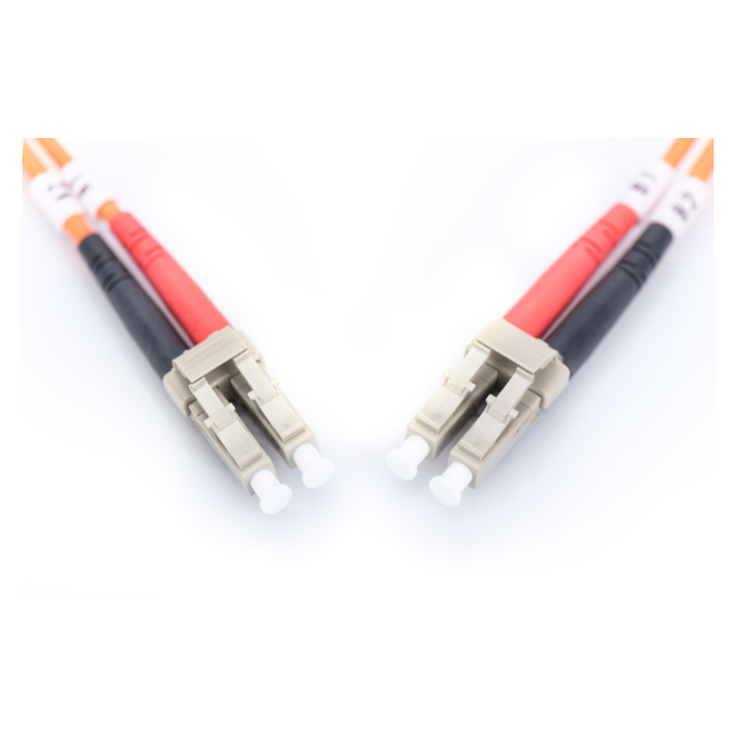 El Digitus Cable de conexión multimode de fibra óptica, LC/LC utiliza fibra de tipo OM2.