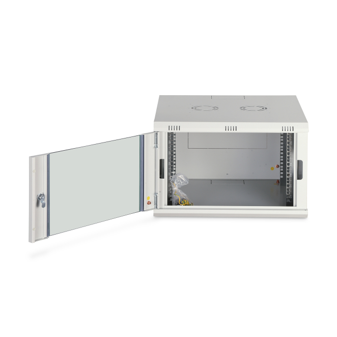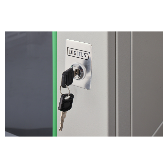 La Digitus Carcasa de pared de la serie Dynamic Basic proporciona una excelente experiencia de usuario gracias a su diseño pensado en la comodidad y productividad. Su puerta frontal con cerradura y los paneles laterales desmontables hacen que el acceso y la configuración de los equipos sean tareas simples y rápidas. Adicionalmente, las entradas de cable pretroqueladas permiten una gestión del cableado organizada y sin complicaciones. El proceso de instalación de la carcasa es sencillo y rápido, utilizando una chapa de montaje que se fija primero a la pared.