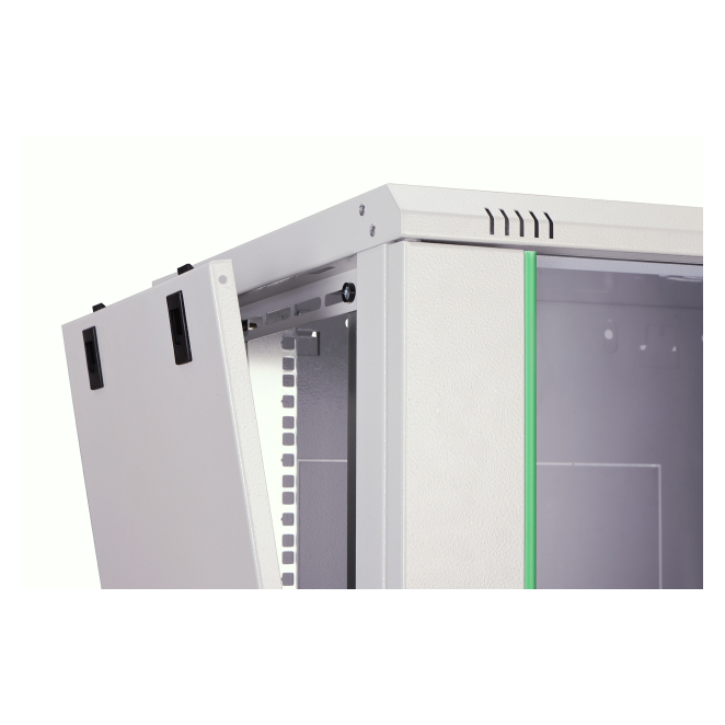 La instalación del soporte de pared para equipos es muy sencilla y rápida, lo que garantiza una experiencia de usuario agradable. La carcasa se fija a la pared en dos pasos: primero, la chapa de montaje se atornilla en la pared y luego se conecta con la carcasa. La Digitus Carcasa de pared de la serie Dynamic Basic cuenta con paneles laterales desmontables, lo que facilita el acceso a los equipos para su mantenimiento. La puerta de vidrio con cerradura proporciona seguridad adicional sin comprometer la visibilidad de los equipos.