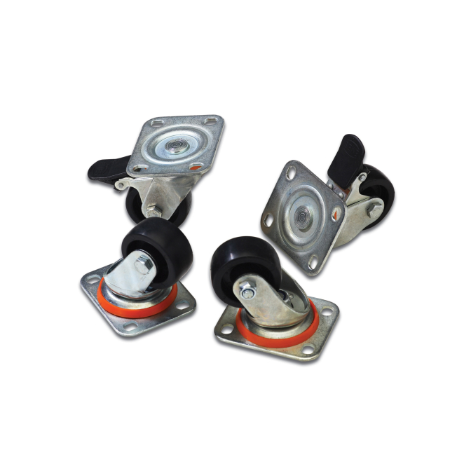 El juego consta de cuatro ruedas giratorias diseñadas específicamente para armarios de red y servidores, proporcionando alta movilidad y estabilidad.