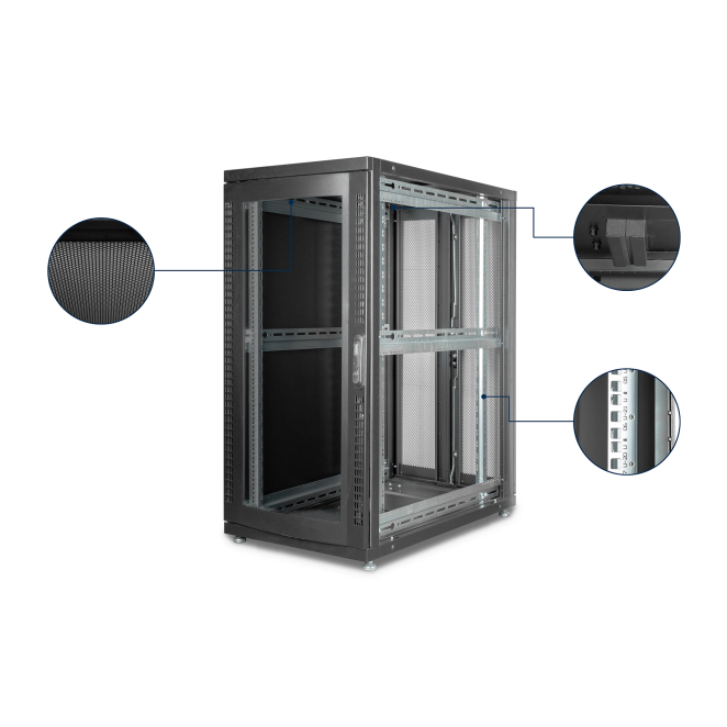 La cubierta perforada y las opciones de ventilación adicionales mantienen sus equipos frescos y funcionales.