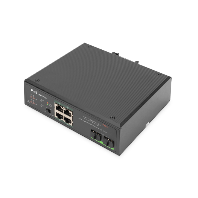 Digitus conmutador PoE de red Gigabit Ethernet de 4 puertos, industrial, no gestionado, 2 enlaces ascendentes SFP