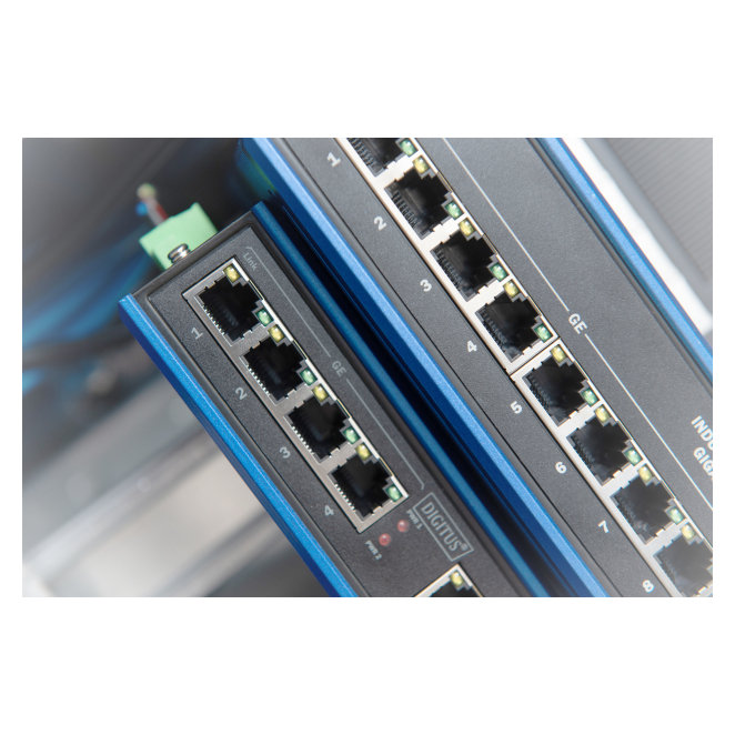 Digitus Conmutador de red Gigabit de 4 puertos en entorno industrial