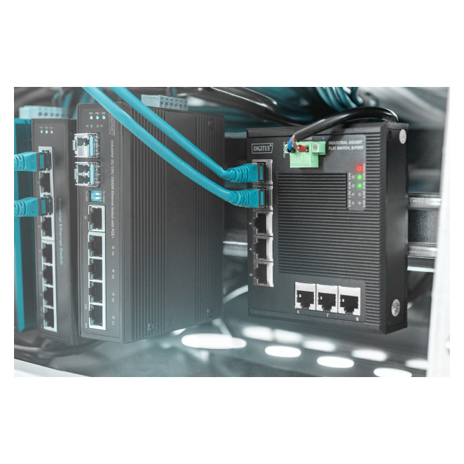 Digitus Conmutador de red Ethernet Gigabit de 8 puertos, plano, industrial, no gestionado