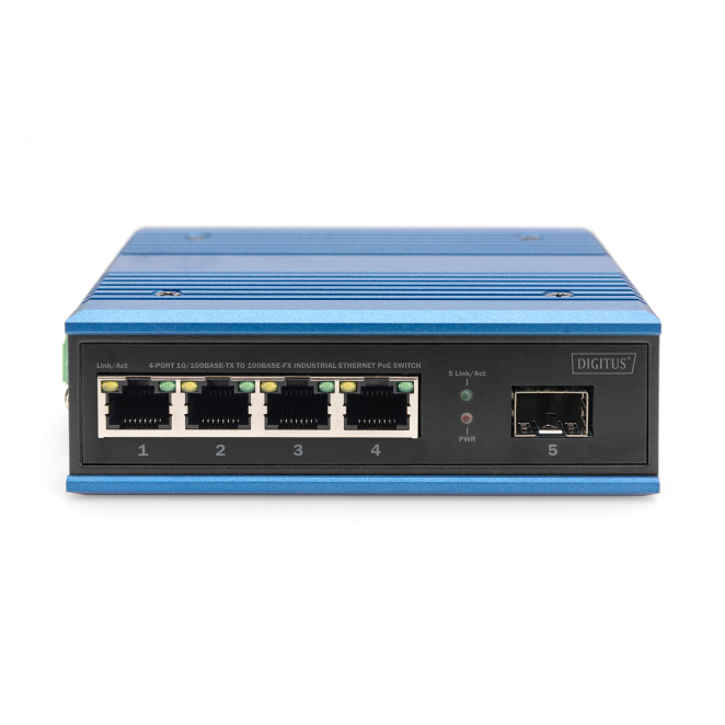 Digitus Conmutador PoE de red Fast Ethernet de 4 puertos, industrial, no gestionado, 1 enlace ascendente SFP