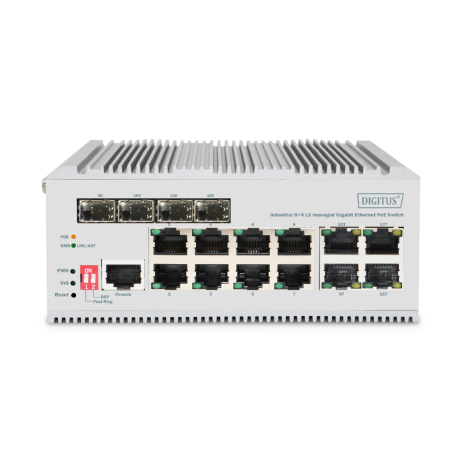 Digitus Conmutador PoE de red Gigabit Ethernet de 8 puertos, industrial, gestionado L2, 4 enlaces SFP