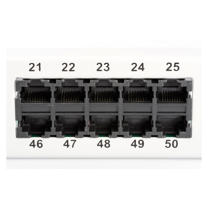 Con 50 puertos RJ-45, garantiza conexiones estables y eficientes para toda su infraestructura de red.