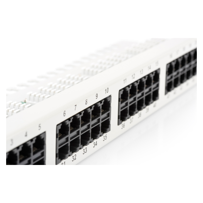 El Digitus Panel de conexión ISDN CAT 3 tiene 50 puertos RJ-45, brindando múltiples puntos de conexión en su red.
