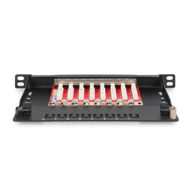 Digitus CAT 6A Slim Patch Panel, blindado, 8 puertos, 0,5 U, 10″, negro