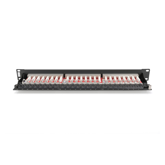 Panel de conexión Digitus CAT 6A apantallado de clase EA, SKU DN-91624S-EA-B. Ideal para redes de alta velocidad.
