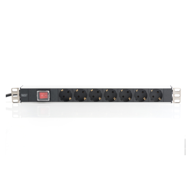 Digitus Regleta de enchufes con perfil de aluminio y conmutadores, toma de alimentación con 7 tomas de tierra, enchufe de seguridad con cable de 2 m