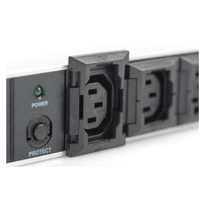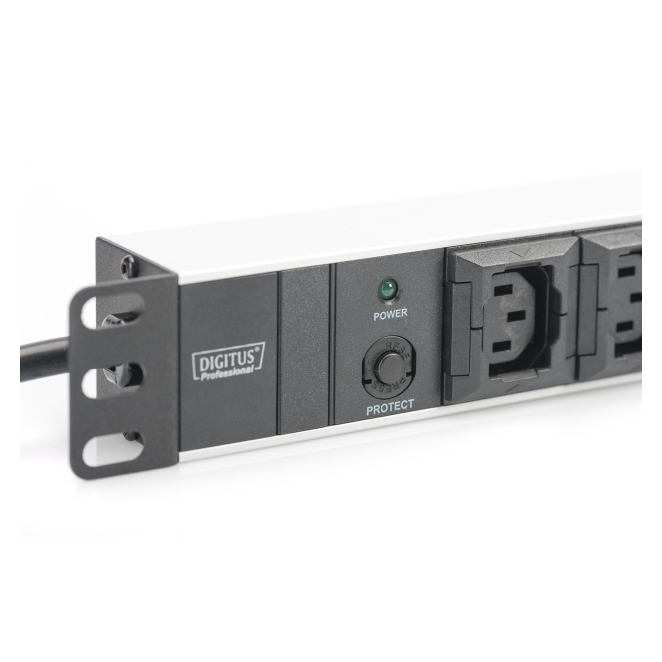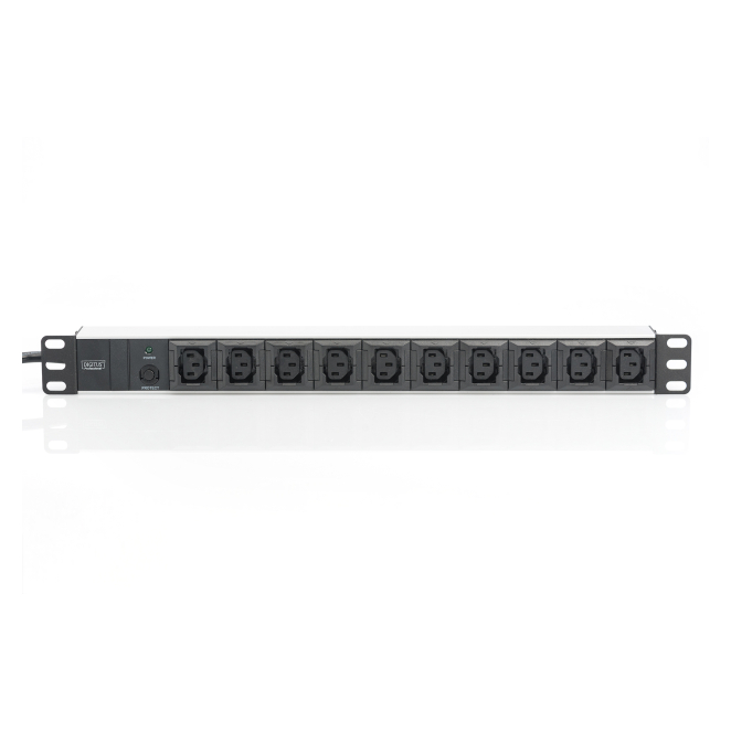 Digitus Regleta de enchufes con perfil de aluminio, 10 tomas, enchufe IEC C14 con cable de 2 m