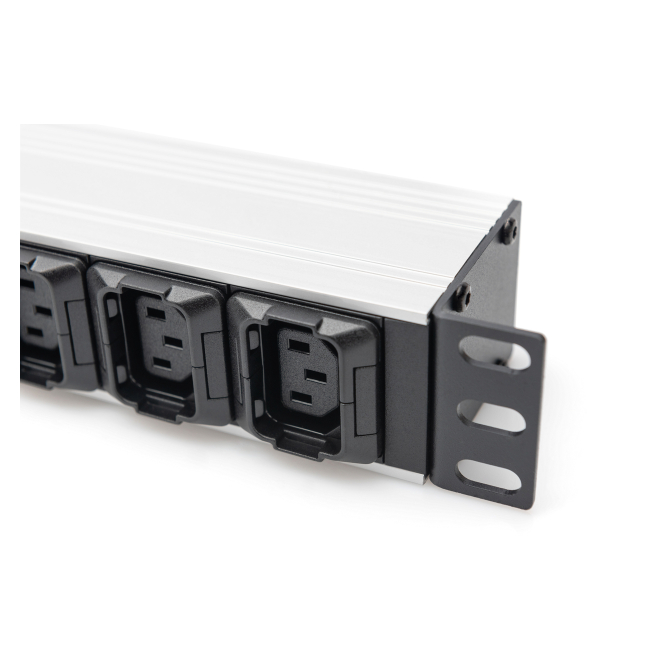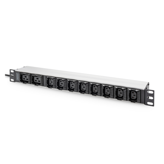 Digitus Regleta de enchufes con perfil de aluminio, 10 enchufes, cable de alimentación de 2 m, enchufes IEC C20