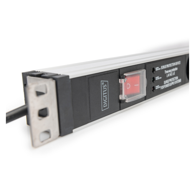 Regleta Digitus de enchufes con perfil de aluminio y protección contra sobrecargas