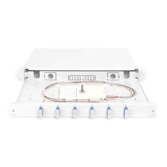 Imagen de la caja de empalme de fibra óptica Digitus, modelo equipado con conector SC, especificaciones OS2, SKU DN-96320/9