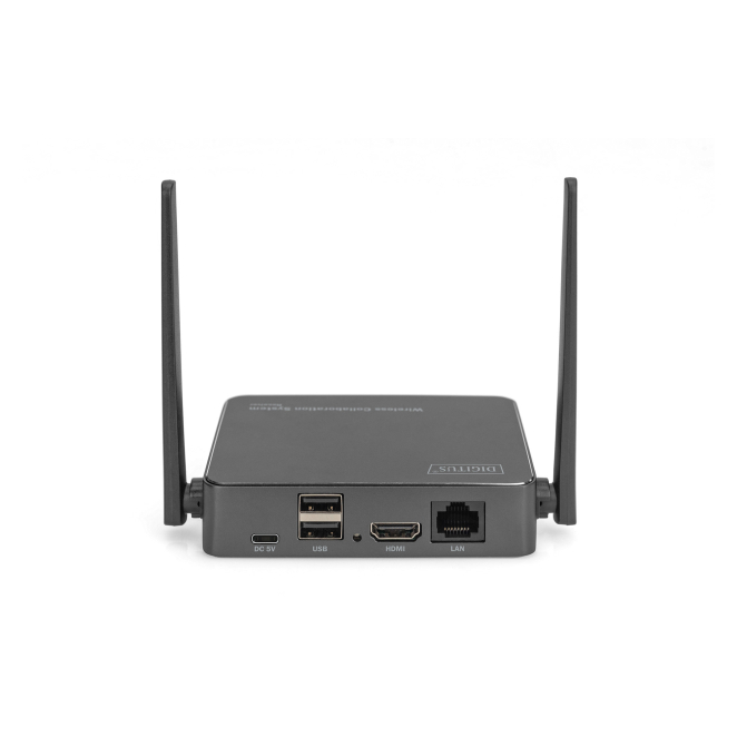 A continuación, te presentamos algunas preguntas frecuentes sobre el Digitus Click & Present Pro – Wireless Collaboration System: El Digitus Click & Present Pro es compatible con ordenadores portátiles, tabletas y smartphones que usen Windows, macOS, iOS, iPadOS y Android. El sistema puede transmitir contenidos de manera inalámbrica a una distancia de hasta 50 metros. Hasta 30 participantes pueden conectarse simultáneamente con el receptor del sistema. Además, hasta 4 participantes pueden presentar simultáneamente en pantalla dividida. No, el sistema no requiere la instalación de software ni aplicaciones adicionales, lo que facilita su uso. Sí, el sistema incluye una función de pizarra para tomar notas en tiempo real y un control de espalda táctil que permite manejar las presentaciones desde una pantalla táctil. Color del producto Negro, Gris Interfaz HDMI Ethernet LAN (RJ-45) cantidad de puertos 1 Cantidad de puertos de entrada HDMI 1 Cantidad de puertos tipo A USB 3.2 Gen 1 (3.1 Gen 1) 2 Enchufe de entrada de CC Sí Ethernet Sí Ethernet LAN, velocidad de transferencia de datos 10 Mbit/s, 100 Mbit/s Wi-Fi estándares 802.11b, 802.11g, Wi-Fi 4 (802.11n), Wi-Fi 5 (802.11ac) Sistema operativo Windows soportado Si Sistema operativo MAC soportado Si Alimentación CC Ancho del paquete 290 mm Profundidad del paquete 190 mm Peso del paquete 1606.25 g Cables incluidos HDMI, USB Adaptador AC incluido Sí ¿Tienes dudas sobre qué producto elegir?