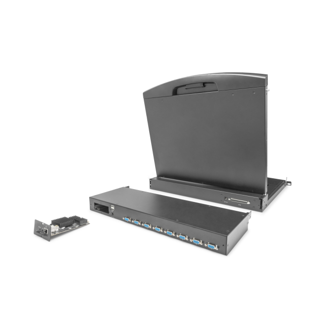 Imagen del Conmutador modular KVM de 8 puertos marca Digitus, modelo DS-72213, ideal para administrar múltiples servidores