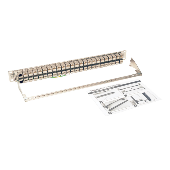 Tripp Lite N254-048-SH-6A Panel de Conexiones de Alimentación Cat6a, Ethernet RJ45, Blindado STP de 48 Puertos para Instalación en 1U de Rack
