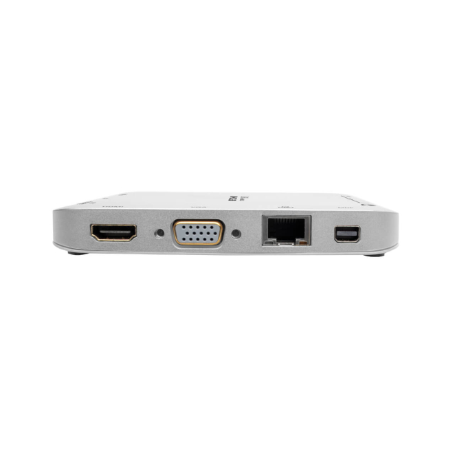 Tripp Lite U442-DOCK2-S Estación de Conexión USB C, doble Pantalla – 4K HDMI / mDP, VGA, USB 3.2 Gen 1, Hub USB A y USB C, GbE, Carga PD de 60W, Plata
