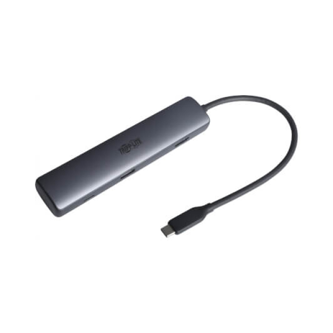 Imagen del hub de interfaz USB Tipo C Gris de Eaton, modelo U442-DOCK40-5, con múltiples puertos para accesorios de portátiles