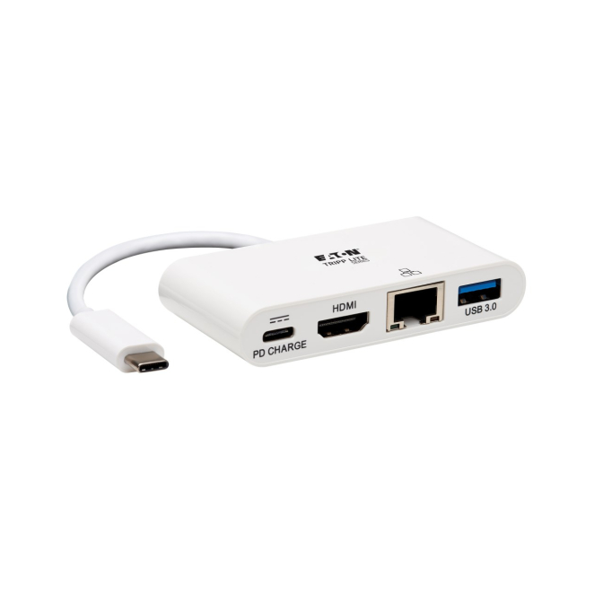 Tripp Lite U444-06N-H4GU-C Adaptador Multipuerto USB-C, 4K HDMI, Puerto USB-A, GbE y Carga PD, HDCP, Blanco