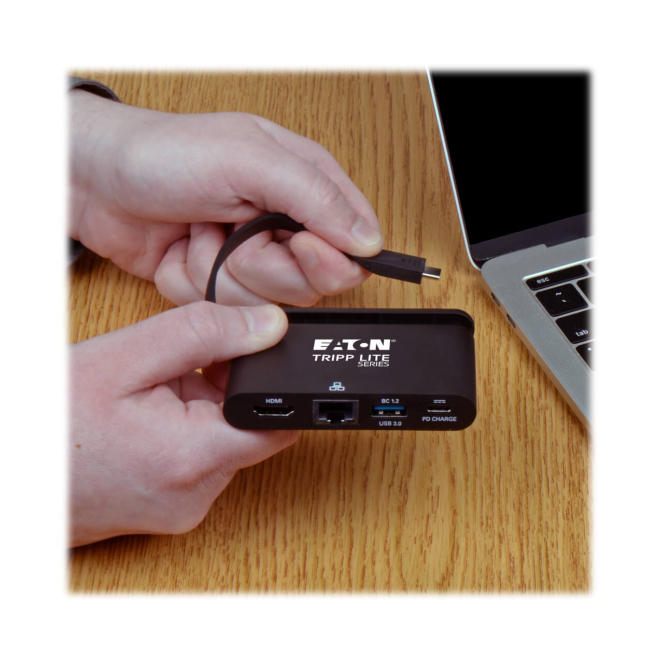 El Tripp Lite U444-T6N-H4GUBC ofrece una experiencia de usuario excepcional gracias a su diseño intuitivo y funcionalidad avanzada. La conexión del cable USB-C reversible asegura una integración sin complicaciones, mientras que el puerto HDMI garantiza video 4K de alta calidad. La inclusión de un puerto USB-A y Gigabit Ethernet facilita la conexión de periféricos y redes cableadas rápidamente. La funcionalidad de carga PD 3.0 asegura que sus dispositivos estén siempre listos para usar. Su portabilidad lo convierte en un accesorio imprescindible para cualquier profesional en desplazamiento, mejorando significativamente la productividad.