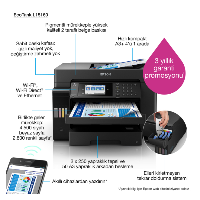 La Epson EcoTank L15160 se destaca por varios motivos, convirtiéndola en una excelente elección para diversas necesidades de impresión: