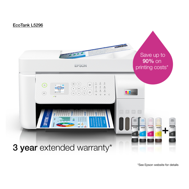 La impresora Epson EcoTank L5296 es ideal para profesionales que necesitan imprimir documentos de alta calidad de manera rápida y eficiente. También es perfecta para el hogar, con su fácil conectividad y bajo consumo de energía. Aquellos que buscan una impresora wifi para facilitar las tareas de impresión disfrutarán de las funcionalidades inalámbricas de la EcoTank L5296. Ya sea para estudiantes, trabajadores desde casa o pequeñas oficinas, esta impresora cubre todas las necesidades de impresión.