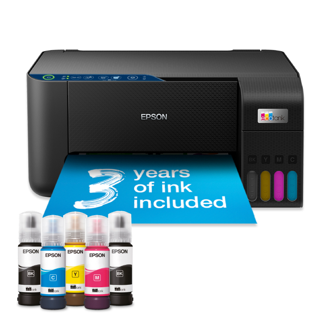 Con los cartuchos incluidos, la Epson EcoTank L3271 puede imprimir hasta 8100 páginas en negro y 6500 en color.