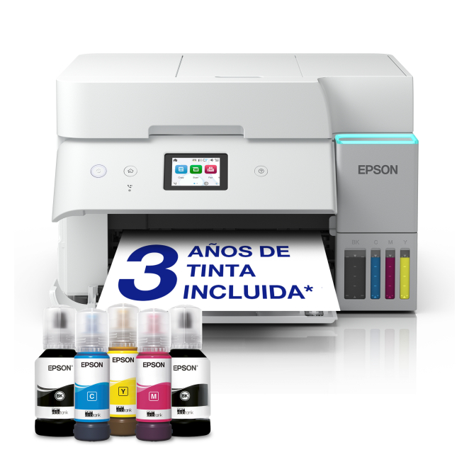 La Epson EcoTank ET-4956 está diseñada pensando en la comodidad y la productividad del usuario. Su sistema de depósitos de tinta facilita el relleno, eliminando la necesidad de cartuchos engorrosos. Además, su pantalla a color de 6.1 pulgadas permite una gestión intuitiva de todas las funciones y ajustes. La impresora también ofrece impresión sin bordes y múltiples opciones de conectividad, lo que la convierte en una herramienta versátil y accesible desde cualquier dispositivo.