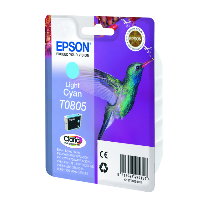Epson Hummingbird Cartucho T0805 cian claro de alta calidad, SKU C13T08054011, ideal para impresiones nítidas y vivas.