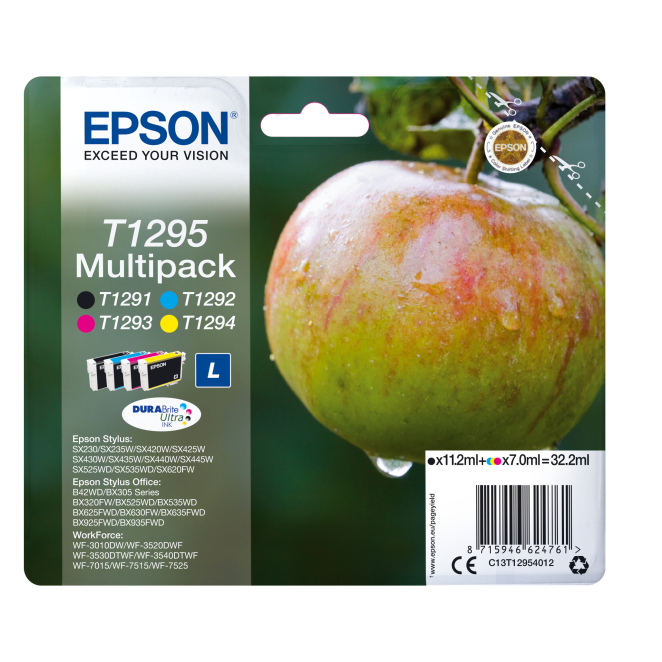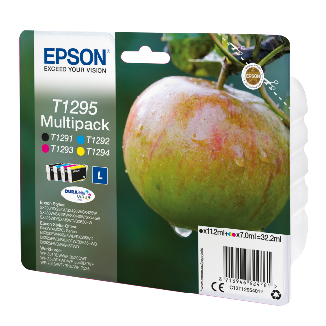 El Epson Apple Multipack T1295 ofrece una serie de beneficios que hacen que sea una opción atractiva para cualquier usuario. Primordialmente, el uso de cartuchos individuales te permite reemplazar solo el color que se haya agotado, lo que optimiza el gasto en tinta. Está diseñado para trabajar a la perfección con impresoras Epson, lo que asegura una calidad de impresión superior y colores consistentes. Además, la tecnología de inyección de tinta garantiza impresiones nítidas y detalladas, tanto en documentos como en fotografías.