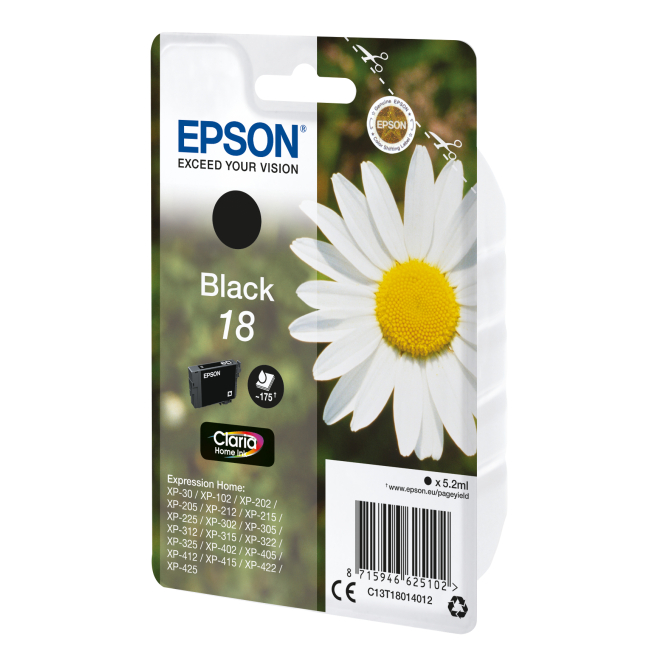 Epson Daisy Cartucho 18 negro, ideal para impresiones nítidas, SKU C13T18014012