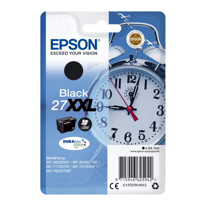 Epson Alarm clock Singlepack Black 27XXL DURABrite Ultra Ink