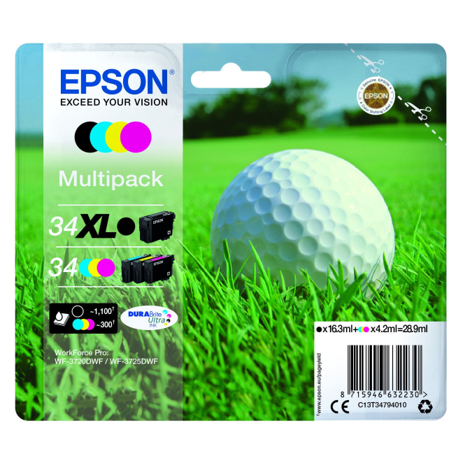 Epson Golf ball C13T34794010 cartucho de tinta 1 pieza(s) Original Alto rendimiento (XL) Negro, Cian, Magenta, Amarillo
