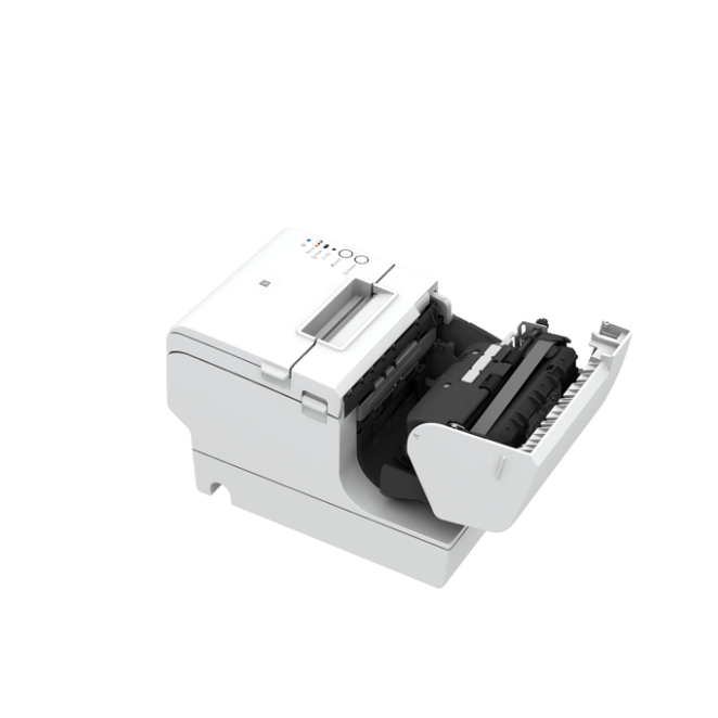 La Epson TM-H6000V-213 incluye capacidad de procesamiento de cheques por MICR, impresión a una velocidad de 350 mm/s, múltiples opciones de conectividad y corte automático.