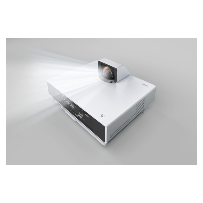 Encuentra aquí respuestas a las preguntas más comunes acerca del Epson EB-800F. El proyector Epson EB-800F tiene una fuente luminosa láser con una duración de hasta 20,000 horas en condiciones normales y hasta 30,000 horas en modo económico. El Epson EB-800F cuenta con múltiples puertos HDMI, USB, VGA, y Ethernet, permitiendo una conexión flexible y fácil integración con diferentes dispositivos. Sí, el Epson EB-800F se puede montar en el techo, la pared o incluso en un escritorio, ofreciendo versatilidad en la instalación. Sí, el Epson EB-800F es ideal para cartelería digital gracias a su tecnología 3LCD, colores vibrantes y capacidad de proyección directa desde medios USB. Sí, el proyector Epson EB-800F permite la función de pantalla dividida, facilitando la conexión de múltiples fuentes de entrada simultáneamente. Compatibilidad de tamaño de pantalla 65-130 " Distancia de proyección (wide) 0-0.4 m Distancia de proyección (tele) 0-0.8 m Brillo de proyector 5000 lúmenes ANSI Brillo de proyector (modo económico) 3500 lúmenes ANSI Tecnología de proyección 3LCD Resolución original del proyector 1080p (1920x1080) Razón de contraste (típica) 2500000:1 Relación de aspecto nativa 16:9 Número de colores 1,07 billones de colores Corrección trapezoidal, horizontal -3 - 3 ° Corrección vertical de keystone (trapezoide) -3 - 3 ° Tamaño de matriz 0.62 " Tipo de fuente luminosa Laser Duración de la fuente luminosa 20000 h Vida útil de la fuente luminosa (modo económico) 30000 h Enfoque Manual Tipo de zoom Auto Alcance de zoom 1.35:1 Relación de alcance 0.27 - 0.37:1 Full HD Sí 3D No Procesamiento de vídeo 10 bit Modos de color de vídeo Cine, Dinámico, Modo de simulación DICOM, Multi-projection, Pizarra, Presentación, sRGB Cantidad de puertos USB 2.0 2 Tipo de serie de interfaz RS-232C Entrada de audio (L,R) 3 Salida de audio (L,R) 1 Cantidad de puertos VGA (D-Sub) 3 Número de puertos HDMI 4 Entrada de video compuesto 1 Puerto DVI No Smart TV No Ethernet Sí Ethernet LAN (RJ-45) cantidad de puertos 1 Ethernet LAN, velocidad de transferencia de datos 10 Mbit/s, 100 Mbit/s Wifi No Navegador web Sí Tarjeta de lectura integrada No Nivel de ruido 36 dB Nivel de ruido (modo económico) 27 dB Protección mediante contraseña Sí Altavoces incorporados Sí Potencia estimada RMS 8 W Posicionamiento de mercado Negocios Tipo de producto Proyector de alcance ultracorto Color del producto Blanco Ubicación Techo, Escritorio, Pared Ranura para cable de seguridad Sí Tipo de ranura de bloqueo del cable Kensington Fuente de energía Corriente alterna Consumo de energía (inactivo) 0.5 W Consumo (modo de ahorro) 262 W Voltaje de entrada AC 220-240 V Frecuencia de entrada AC 50 - 60 Hz Compatibilidad de software via: Crestron Integrated Partner, Crestron RoomView, Extron IP Link, Extron XTP, AMX Device Discovery, Control4 Simple Device Discovery Protocol Software incluido Inhalt DIY-App, EasyMP Multi PC Projection, Epson Projektor Content Manager, Epson Projektor Management Intervalo de temperatura de almacenaje -10-60 °C Intervalo de humedad relativa para funcionamiento 20-80 % Intervalo de humedad relativa durante almacenaje 10-90 % Ancho 458 mm Profundidad 375 mm Altura 210 mm Peso 9400 g Ancho del paquete 530 mm Profundidad del paquete 595 mm Altura del paquete 345 mm Peso del paquete 13250 g Mando a distancia incluido Sí Pilas incluidas Sí Cables incluidos Corriente alterna Tarjeta de garantía Sí