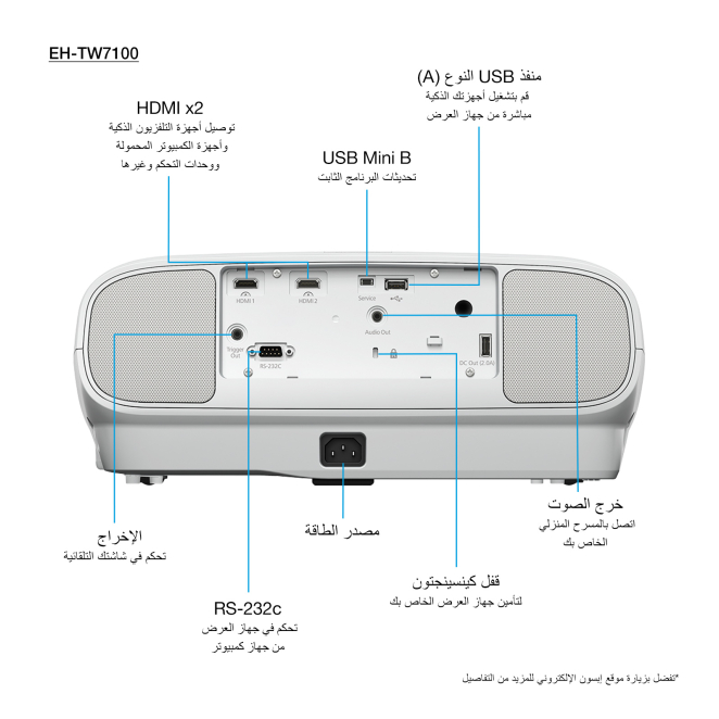 Aquí respondemos algunas de las preguntas más comunes sobre el Epson EH-TW7100: Sí, el Epson EH-TW7100 es compatible con contenido 4K y ofrece una calidad de imagen UHD excepciona. El Epson EH-TW7100 puede proyectar pantallas desde 40 hasta 500 pulgadas, adaptándose a diversas necesidades. No, el Epson EH-TW7100 tiene un bajo nivel de ruido de 32 dB en modo estándar y 24 dB en modo económico. Sí, puedes conectar dispositivos de streaming a través de sus dos puertos HDMI. Sí, el proyector cuenta con dos altavoces de 10 W para un sonido integrado de calidad. Compatibilidad de tamaño de pantalla 40-500 " Distancia de proyección del objetivo 2.95-4.77 m Brillo de proyector 3000 lúmenes ANSI Tecnología de proyección 3LCD Resolución original del proyector UHD 4K (3840x2160) Razón de contraste (típica) 100000:1 Relación de aspecto nativa 16:9 Número de colores 1,07 billones de colores Corrección trapezoidal, horizontal -30 - 30 ° Corrección vertical de keystone (trapezoide) -30 - 30 ° Tamaño de matriz 0.61 " Salida de luz blanca 3000 lúmenes ANSI Salida de luz de color 3000 lúmenes ANSI Tipo de fuente luminosa Lámpara Duración de la fuente luminosa 3500 h Vida útil de la fuente luminosa (modo económico) 5000 h Potencia de la lámpara 250 W Enfoque Manual Intervalo de longitud focal 18.2 - 29.2 mm Rango de apertura 1.49-1.77 Tipo de zoom Manual Relación de alcance 1.32 - 2.15:1 rango de cambio Horizontal de la lente -24-24 % rango de cambio vertical de la lente -60-60 % Full HD Sí 3D Sí Procesamiento de vídeo 10 bit Modos de color de vídeo Auto, Cine, Dinámico, Natural, Proyector Cantidad de puertos USB 2.0 2 Cantidad de puertos Mini-USB 2.0 1 Tipo de serie de interfaz RS-232C Salida de audio (L,R) 1 Número de puertos HDMI 2 Puerto DVI No Smart TV No Ethernet No Wifi No Tarjeta de lectura integrada No Nivel de ruido 32 dB Nivel de ruido (modo económico) 24 dB Altavoces incorporados Sí Potencia estimada RMS 10 W Posicionamiento de mercado Cine en casa Tipo de producto Proyector de alcance estándar Color del producto Blanco Ubicación Techo, Escritorio Ranura para cable de seguridad Sí Tipo de ranura de bloqueo del cable Kensington Pantalla incorporada No Fuente de energía Corriente alterna Consumo de energía (inactivo) 0.5 W Consumo (modo de ahorro) 297 W Voltaje de entrada AC 100-240 V Frecuencia de entrada AC 50 - 60 Hz Intervalo de temperatura operativa 5-30 °C Intervalo de temperatura de almacenaje -10-60 °C Intervalo de humedad relativa para funcionamiento 20-80 % Intervalo de humedad relativa durante almacenaje 10-90 % Ancho 410 mm Profundidad 310 mm Altura 157 mm Peso 6900 g Ancho del paquete 495 mm Profundidad del paquete 500 mm Altura del paquete 235 mm Peso del paquete 8947 g Mando a distancia incluido Sí Manual de usuario Sí Pilas incluidas Sí Cables incluidos Corriente alterna