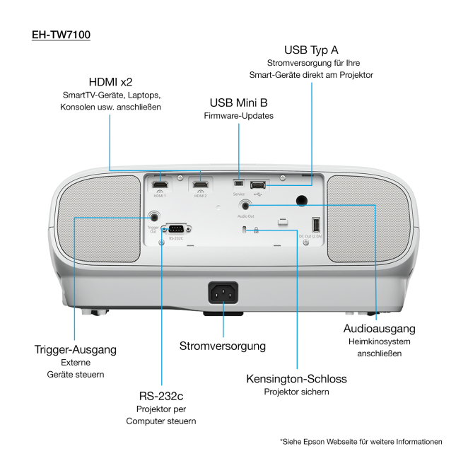 Comprar el proyector Epson EH-TW7100 es una excelente inversión por muchas razones: Epson EH-TW7100 ofrece una resolución UHD 4K y un contraste impresionante. Compatible con contenido 2D y 3D, y con una amplia gama de dispositivos de entrada. Cuenta con zoom manual, enfoque ajustable y corrección trapezoidal. Dos altavoces de 10 W eliminan la necesidad de equipo adicional. Perfecto para disfrutar de películas y juegos sin interrupciones.