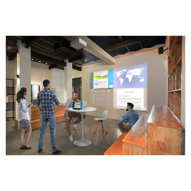 El Epson EB-L530U puede instalarse fácilmente en techos o sobre un escritorio. Su desplazamiento de lente y corrección trapezoidal facilitan un ajuste perfecto sin necesidad de un posicionamiento preciso.
