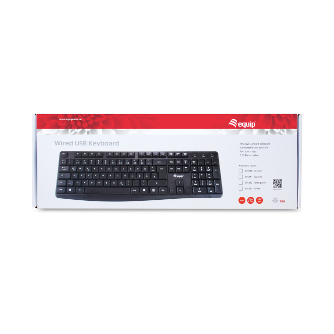 El teclado Equip 245211 ofrece una conexión estable y fácil de instalar a través de su interfaz USB.