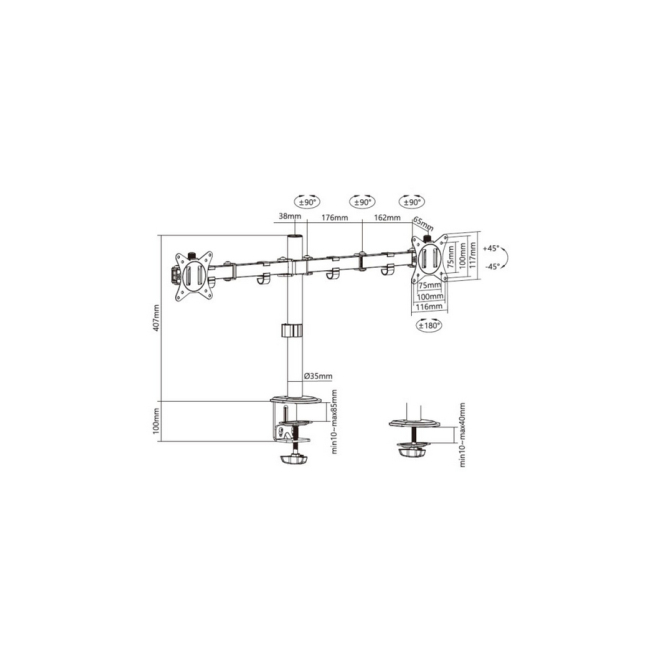 Equip Soporte de escritorio articulado para dos monitores de 17-32 pulgadas, negro