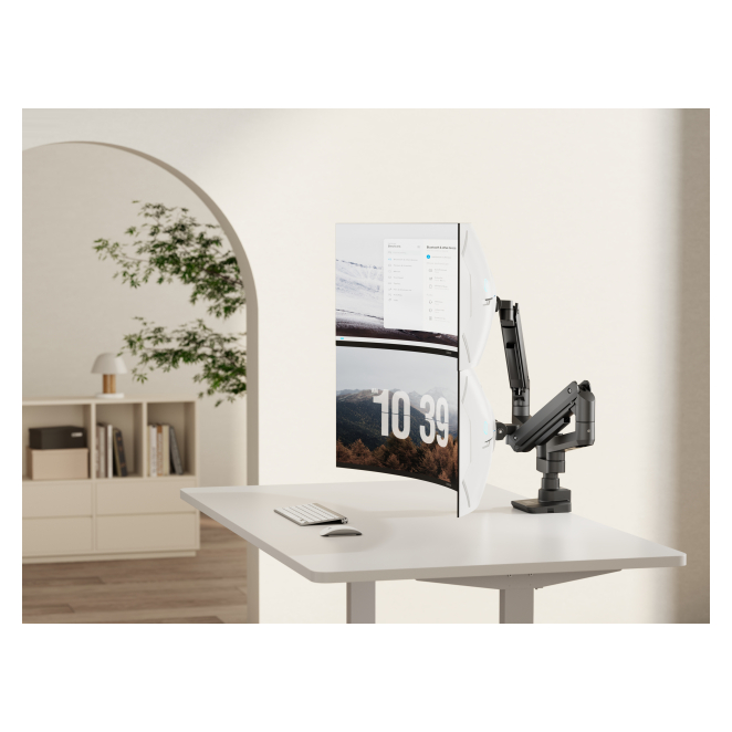 El Equip soporte de sobremesa para monitores dobles de 17«-35» brinda múltiples ventajas que lo hacen ideal para cualquier ambiente de trabajo. Entre los beneficios principales se encuentran: